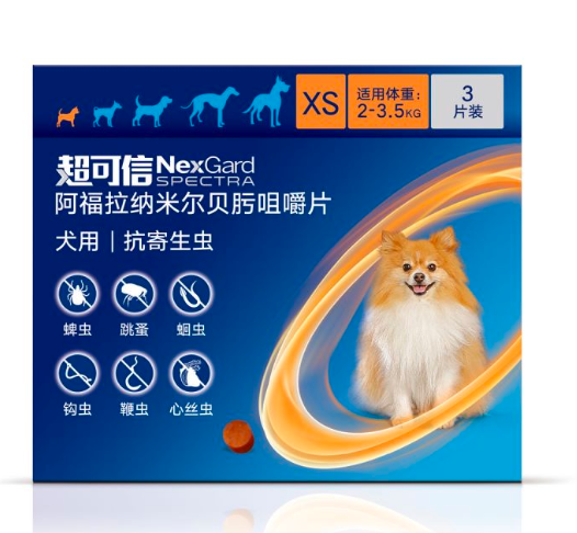 除了驱杀蜱虫,超可信还可以驱杀跳蚤、蛔虫、钩虫、鞭虫,预防心丝虫,一个月喂食一次,就能为狗狗带来相应的保障。