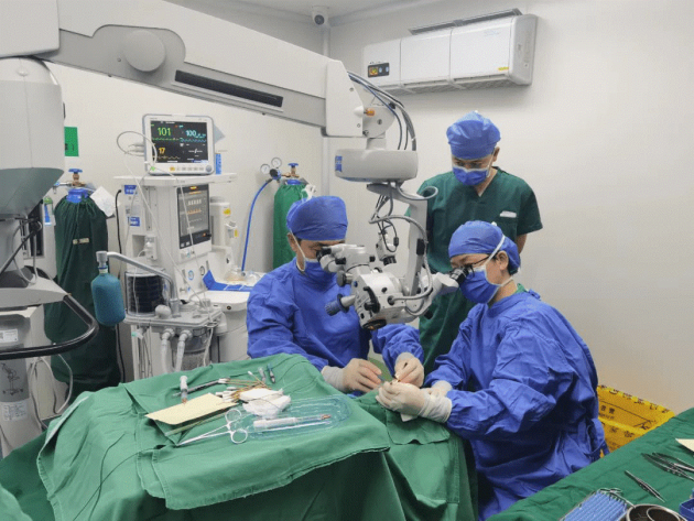 ▲潘伟华教授在为患者实施iTrack微导管辅助下的schlemm管手术