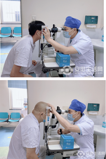 ▲潘伟华教授为首批实施iTrack微导管辅助下的schlemm管手术的患者做检查