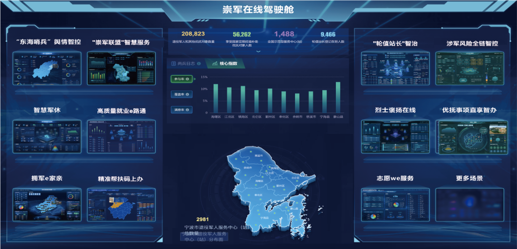 聚焦退伍军人“急难愁盼”问题,宁波市退役军人事务局通过优化数字化服务管理模式、健全常态化慰问机制、完善制度化服务体系,着力构建全过程全周期管理保障体系,不断推动数字化改革,深化“崇军在线”多跨场景应用建设,逐步构建起宁波退役军人全生命周期的优质服务。自去年上线以来,宁波“崇军在线”经过多次迭代升级,已惠及20多万名退役军人及“三属”,日使用量超过30万人次,点出量超计1亿人次。“这是我们宁波独有的应用,不仅坐地铁公交有优惠,还能享受全市3000多家‘崇军联盟’的商家给予的折扣,既实惠又便捷。”享受到“崇军在线”新成果的退役军人薛明感到特别自豪。