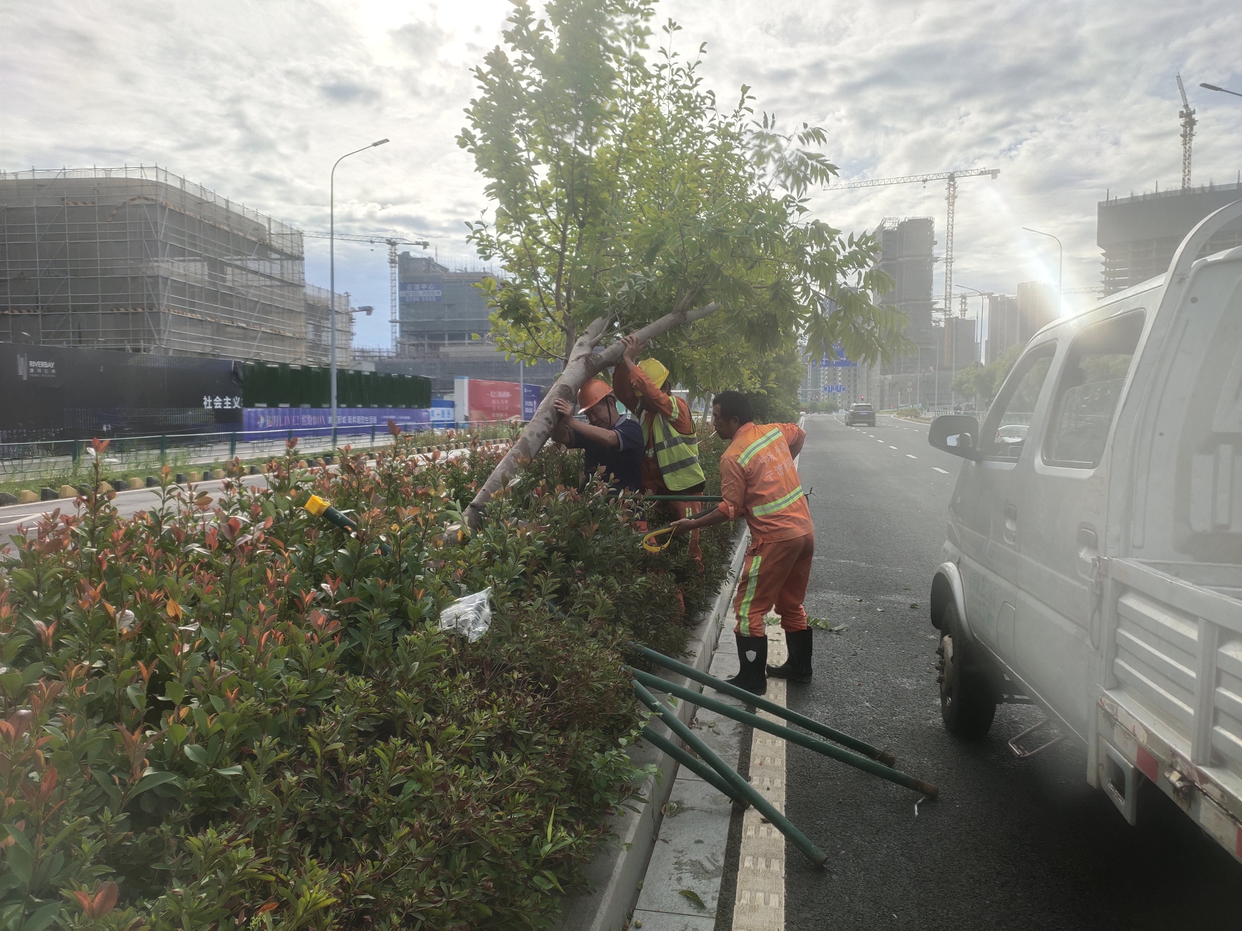 积水点位全力强排、扶起倒伏树木、收运积存垃圾、开展消杀工作、排查照明设施断电点位恢复供电……当前,台风“梅花”已远离,江北区综合行政执法局全局正齐心协力,全力全面开展灾后重建工作。