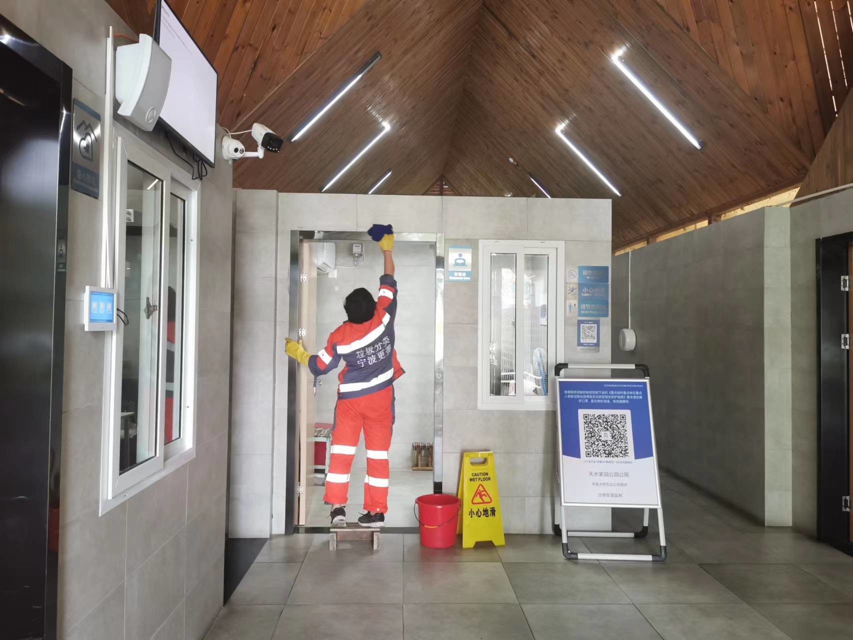 “这座公厕昨晚有积水漫进来,现在水退了,电也通了,所以我要尽快进行消毒,恢复正常运转。”公厕的余阿姨向记者介绍道。据悉,江北受台风梅花影响暂停开发的14座公厕中,除长岛花园公厕因电路问题暂未开放外,其余13座公厕都已经经过消毒并开放使用。日前,有名为《来市中心看海》的短视频在社交媒体中热传,其实网传视频中出现的宁波老外滩被潮水淹没的区域,专业的说法叫泄洪区,除了老外滩外,槐树公园也有类似的设置。15日上午10点整,江北市政养护中心的工作人员正通过强排车的排口管道往泄洪区内排放槐树路积水。“等退潮退水后,泄洪区积水也会慢慢退下去,现在我们的工作人员正在密切关注水位情况,会在积水退了的时候及时撤除防洪挡板,请市民朋友们暂时耐心等待。”市政养护中心相关负责人表示,此外,台风后倒伏树木的清理、扶正、加固工作也在持续进行中。