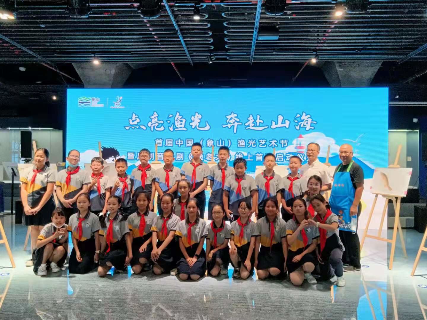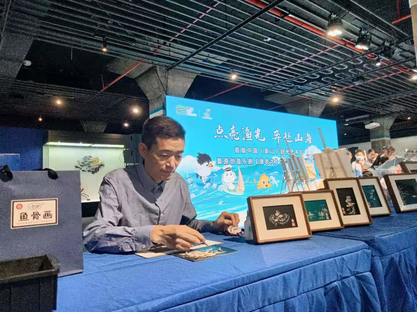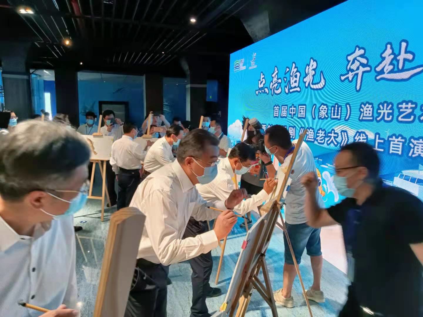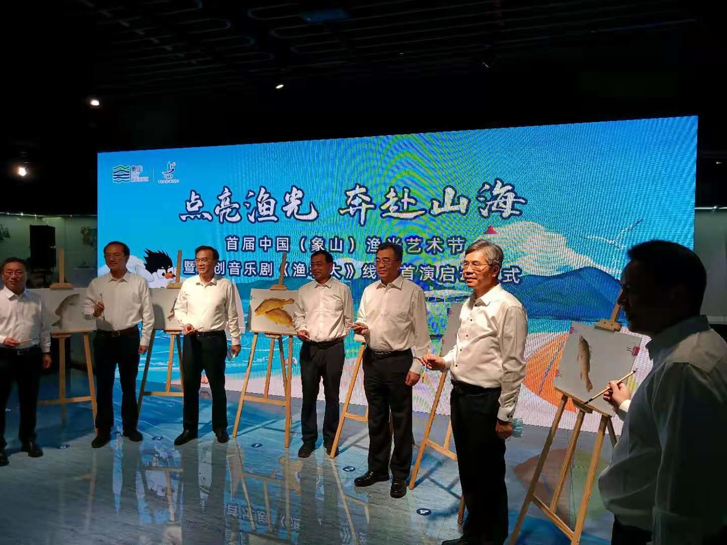 作为第二十五届中国(象山)开渔节重要活动之一的“点亮渔光,奔赴山海” 首届中国(象山)渔光艺术节之原创音乐剧《渔老大》线上首演,今天在位于象山石浦的中国海洋渔文化馆启动 。在启动仪式上,来自北京、省、市、县的有关领导,以表达渔区百姓美好祝愿的特种方式,给跃然纸上的鱼儿画鱼点睛。