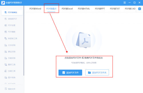 想将PDF转换为图片的话,可以使用全能PDF转换助手,它支持PDF与图片、Word等多种文件格式之间的相互转换,而且还可以一键批量转换多个文件,转换效率非常高。