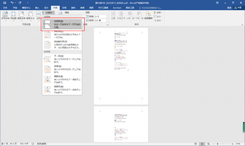 将鼠标移动到Word文档中需要拆分的位置,然后在菜单栏中依次点击【分隔符】——【分页符】,就能将单页文档拆分成多页了。