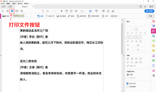 拆分好页面后,依次点击右上角的【文件】—【导出为PDF】按钮,将文件保存为PDF格式既可。