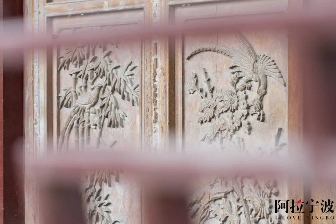 一楼青石栏杆上雕着各种飞禽走兽,栩栩如生。屋顶为我国传统的飞檐翘角的宫殿式建筑,上饰红色油漆,门窗雕有各种花卉和动物图案。