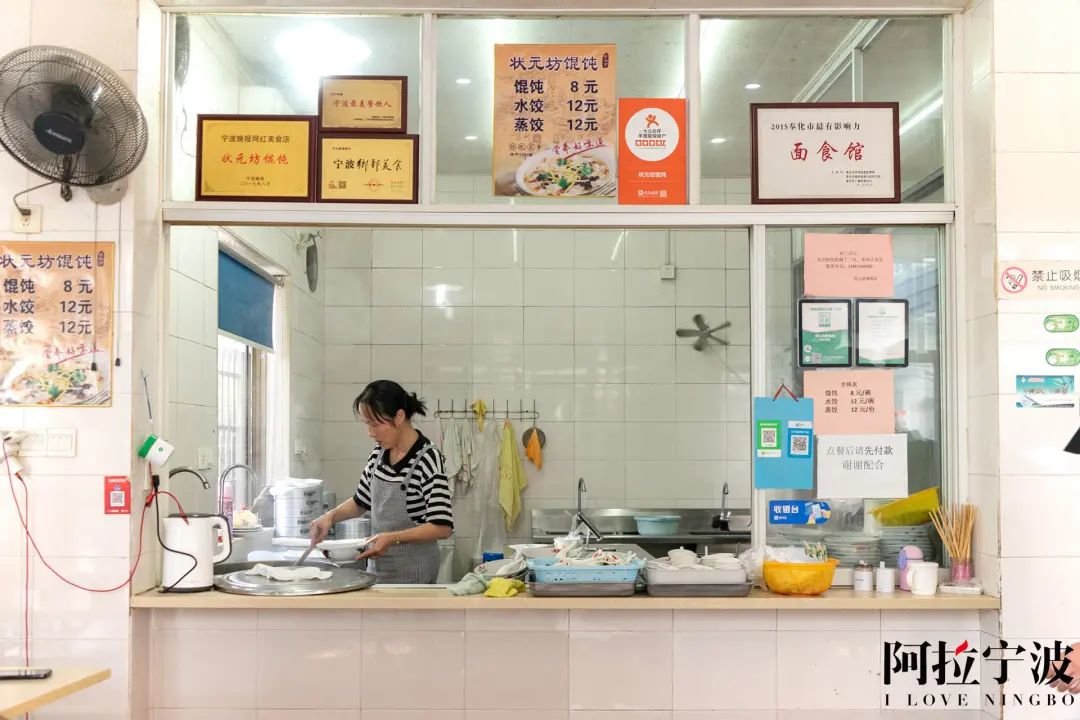 门头微微泛旧,始于1980年的馄饨店,来此的都是老客。只贩卖三样吃食:馄饨、水饺和蒸饺。要不是隔壁那家48岁高龄的大饼近期闭店,阿拉君还能多尝亿口。