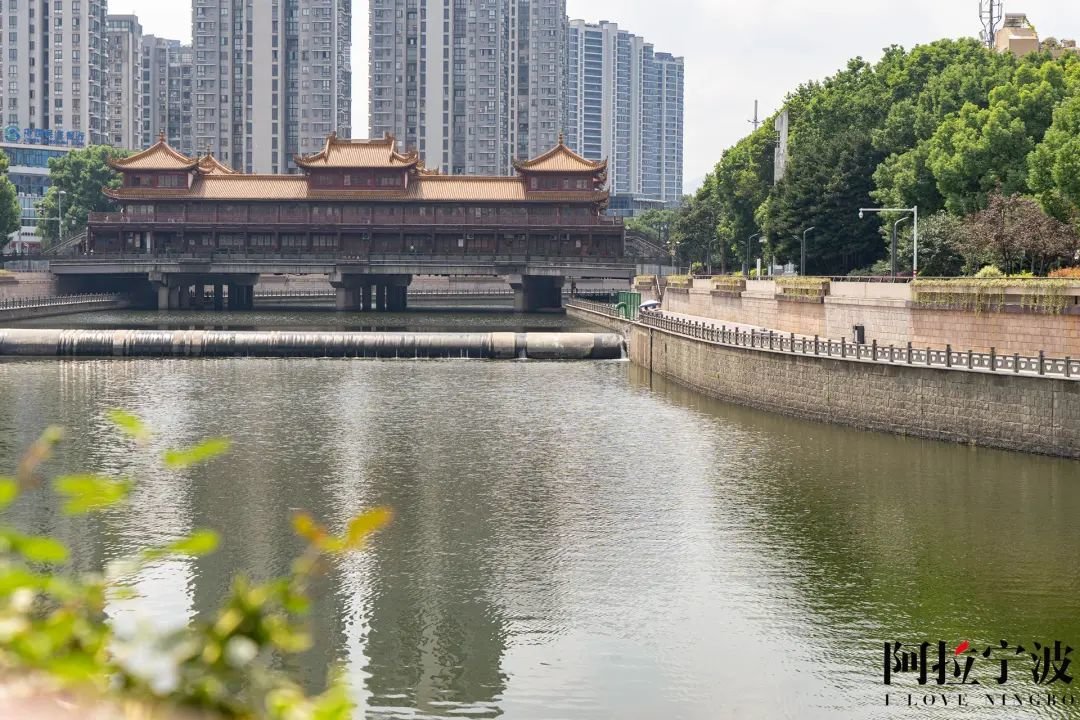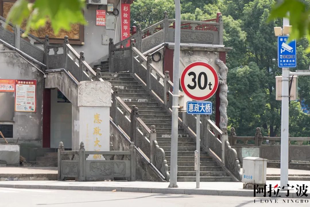 奉化江上望江楼,望江楼下惠政桥。惠政大桥与望江楼下的商铺同为一体,又有过街天桥,倒有些鼓楼的意思了。
