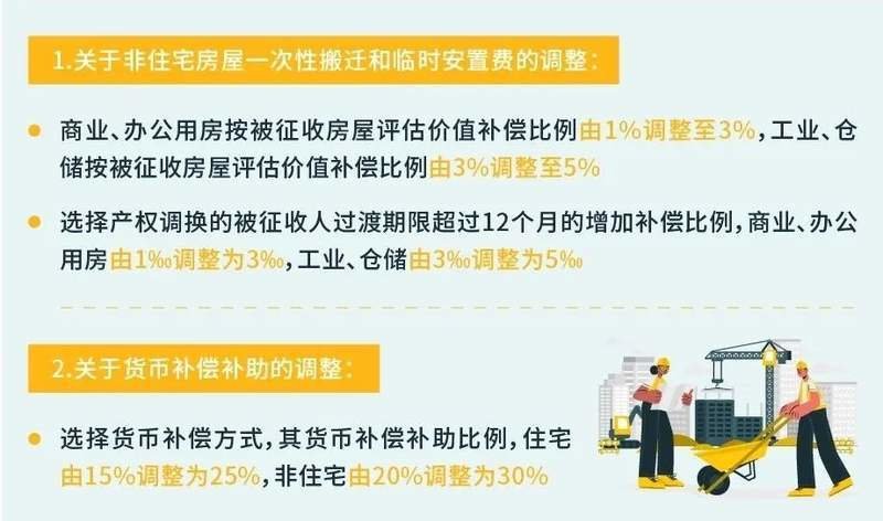 根据镇海区房屋征收中心的解读,此次新政策相比于2020年7月10日公布实施的老政策,主要调整内容有以下两方面: