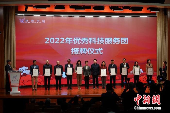 2023“科创中国”年度会议上,为2022年优秀科技服务团代表授牌。中新社记者 孙自法 摄