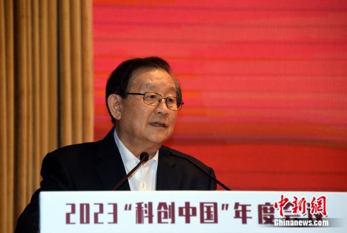 2023“科创中国”年度会议上,全国政协副主席、中国科协主席万钢讲话。中新社记者 孙自法 摄