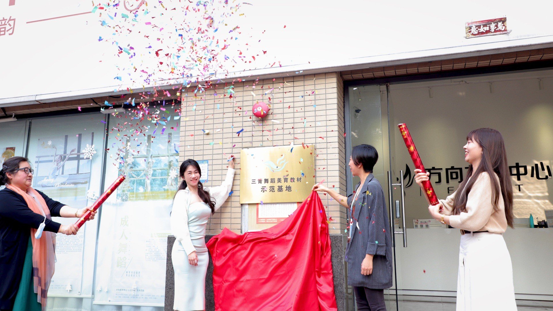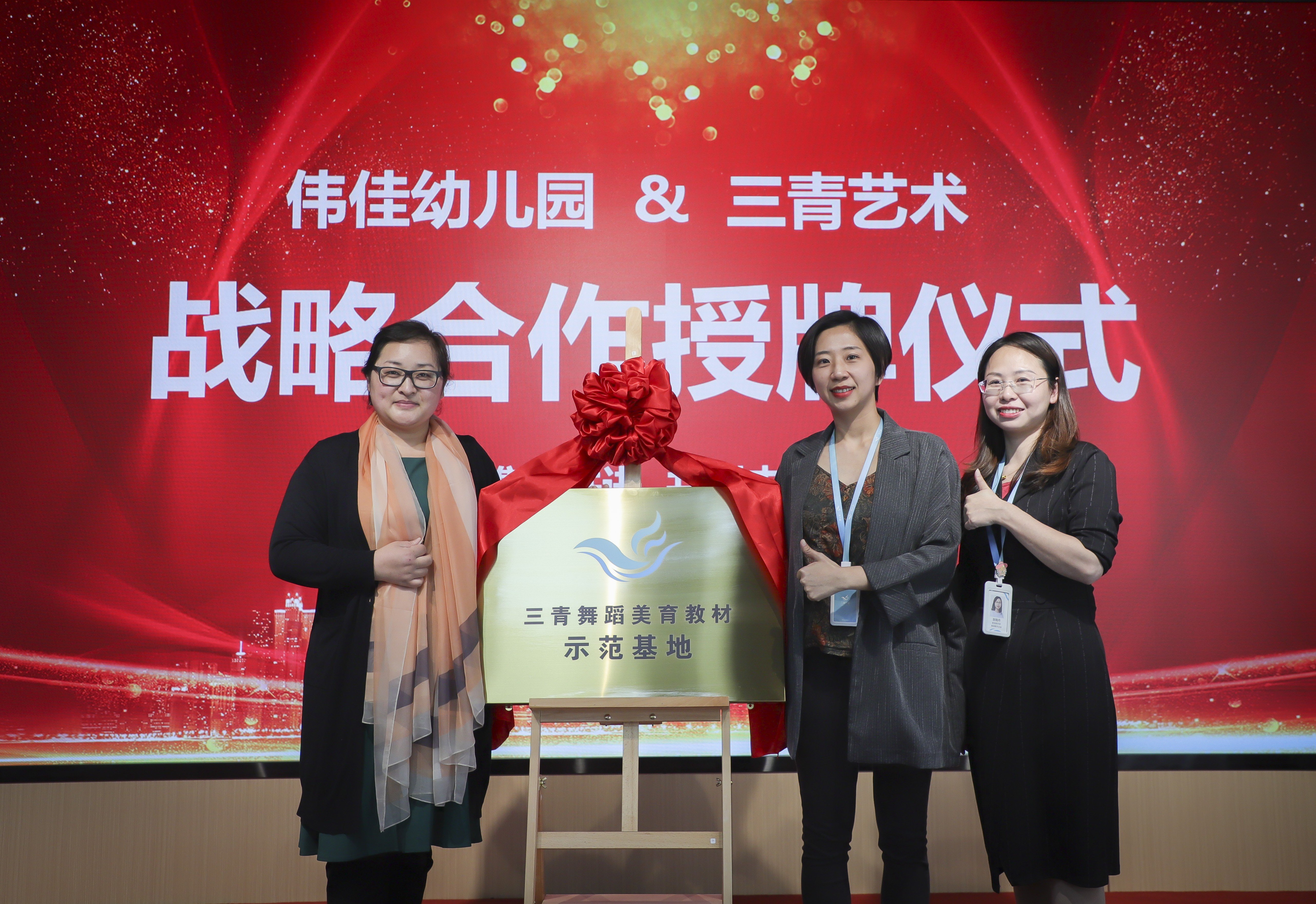 2023年3月1日,三青舞蹈美育教材示范基地(广州校区)挂牌仪式在中国经济十强区之一的广州市黄埔区隆重举行。出席挂牌仪式的有方向艺术中心校长方丹彤、教研教学负责人 胡樱桃,广州黄埔伟佳幼儿园董事 曹珊珊、园长 汪小艳,广州三青艺术科技发展有限公司(以下简称“三青艺术”)创始人 翁鹰、教研教学总监兼三青舞蹈美育教材研编负责人 张晓丹等。