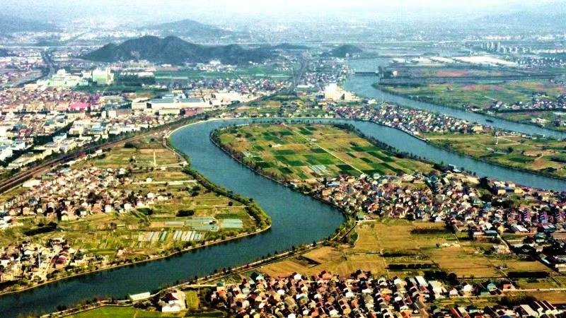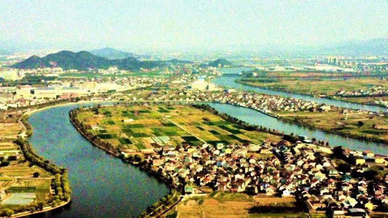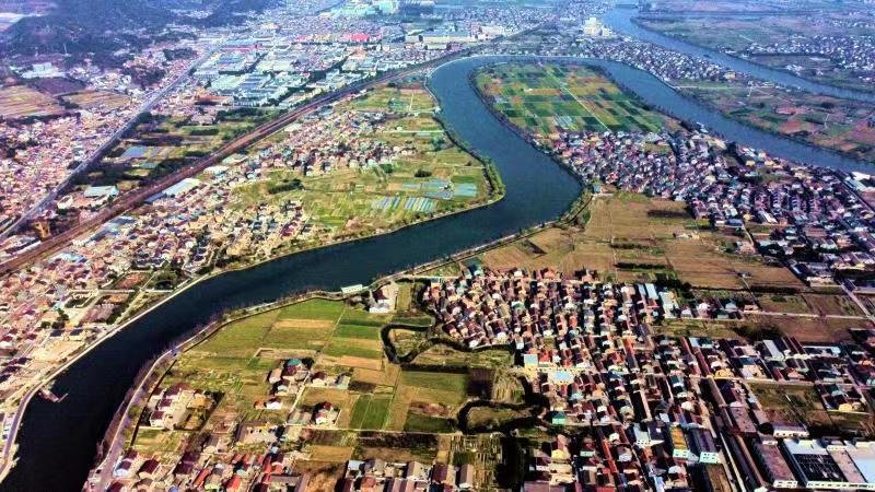 春日的江南,阳光普照、大地万物复苏。3月7日,无人机视角下的京杭甬运河姚江段,两岸自然形成的冲击平原田园里,春意盎然,恰似一块春天里的调色板,充满了诗情画意。