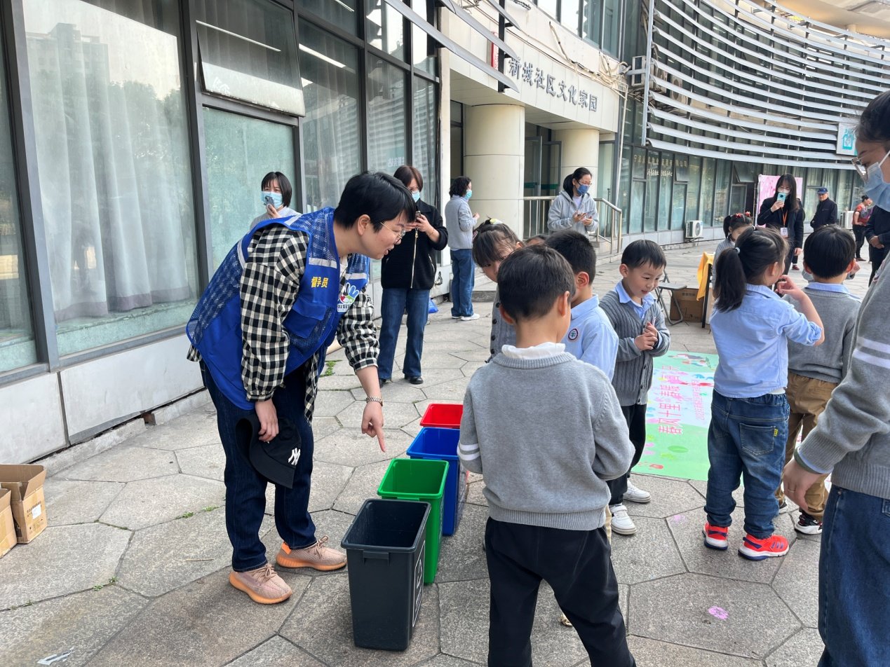 最后在垃圾分类工作人员的引导下,小朋友们将矿泉水瓶和纸巾正确投放到了垃圾桶里。