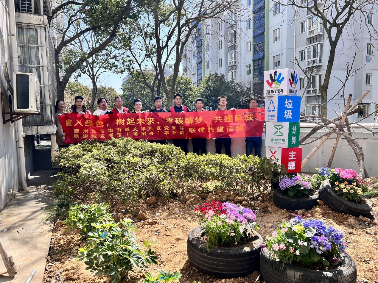 3月14日上午,中铁建城市发展浙东(甬绍舟)事业部,进入首南街道文华社区学府苑小区,与文华社区共建开展“植入绿色,树起未来,零碳筑梦,共建甬城”为主题的垃圾分类主题园改造活动。位于学府苑小区12幢楼下的花坛原本摆满了居民种植蔬菜大葱的泡沫箱,极其影响小区整体环境;也因为经常有人踩踏,这里的植被稀疏,黄泥地暴露在外,极不美观。改造现场,大家分工明确,有的处理老旧的泡沫箱、有的挥起锄头开垦、有的负责种植新绿植,现场气氛热火朝天也井然有序。