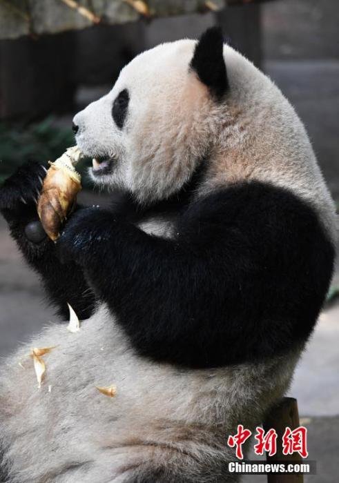 资料图:重庆动物园大熊猫正在吃竹笋。 周毅 摄