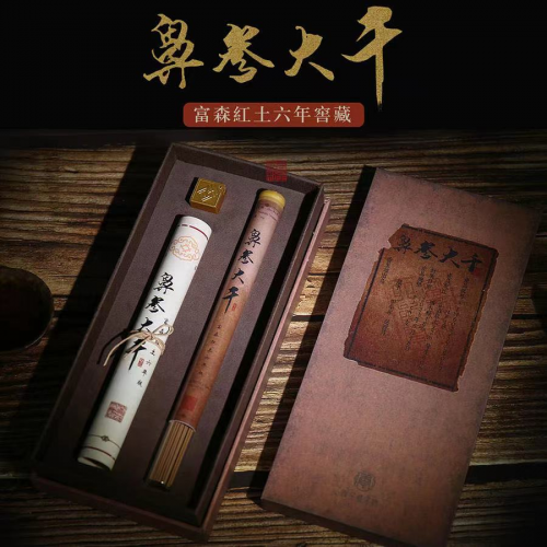 香至尊沉香出品的鼻参大千•富森红土窖藏线香,2017年9月26日首次开坛,一首发问世便备受香友关注和推崇,故宫博物院刘静老师还特意为这款富森红土香品写了首发贺词。在第八届中国(东莞)国际沉香文化艺术博览会上,鼻参大千•富森红土年窖藏线香获得了《年度最佳产品奖》。2018年9月27日,再度开坛,带来更为震撼的嗅觉体验。2019年12月9日,三次开坛,带着虔诚的信念力量,弥足珍贵。