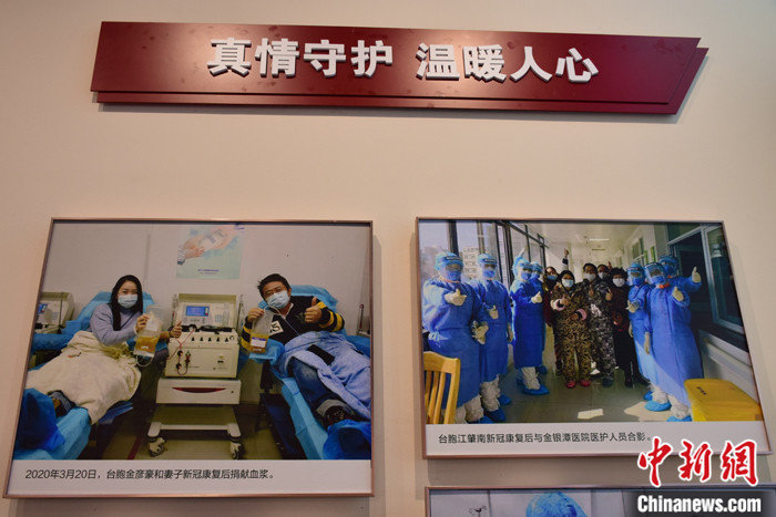展陈通过“台胞江肇南新冠康复后与金银潭医院医护人员合影”“台胞金彦豪和妻子新冠康复后捐献血浆”“台资企业斯米克集团向武汉捐赠抗疫物资”“台湾青年在武汉经济技术开发区薛峰社区做志愿者”“2020年在汉台胞抗疫纪实”等图片、视频,记录了两岸同胞患难与共、守望相助、携手抗疫的动人故事。