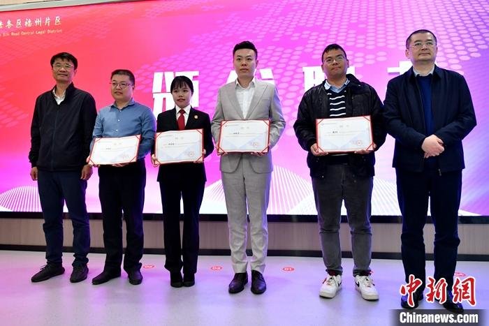 4月3日,福建省福州市,两岸法务服务交流中心在海丝中央法务区福州片区成立。图为颁发服务专员聘书仪式。 中新社记者 吕明 摄