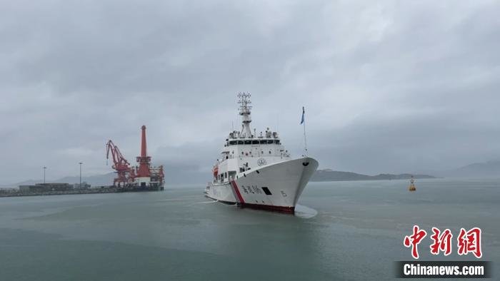4月5日9时,由台湾海峡大型巡航救助船“海巡06”轮领衔的海事执法船艇编队驶离福建海事局平潭海事监管基地,开启台湾海峡中北部联合巡航巡查专项行动。图为“海巡06”轮。福建海事局供图