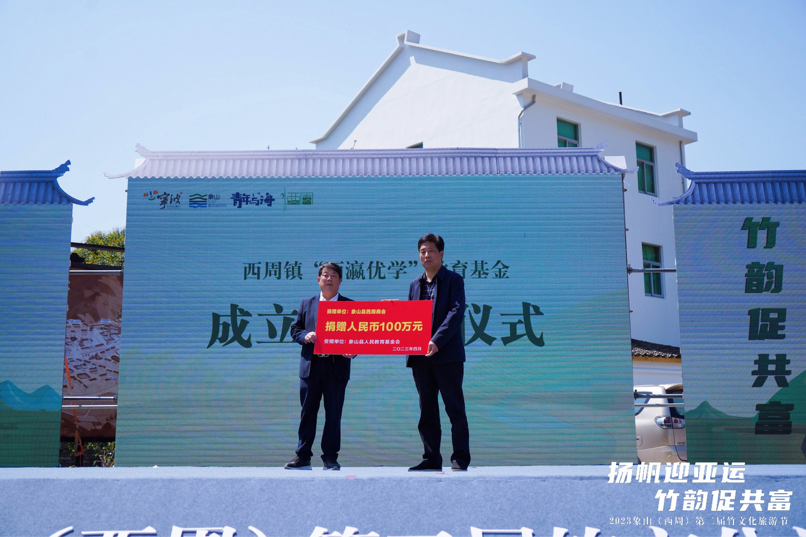 为赋能乡村振兴,加速文旅、农旅等融合,象山西周镇以竹为媒,共谋发展,走好共富路。此次活动授予新浪宁波负责人张赛红、浙江之鹰律师事务所主任张西平、宁波潮象文化传媒有限公司总经理倪双双等市县新联会代表们为“新力甬动·象新力”乡村共富推荐官,推动乡村振兴,为象山西周镇的发展注入新的活力。同时为推动西周镇教育事业蓬勃发展,保障全镇经济社会高质量发展,由西周商会热心企业家倡议成立“西瀛优学”教育基金并进行了授牌仪式。