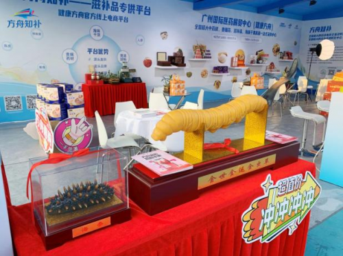 现场了解到,方舟知补平台主营产品包括燕窝燕盏、传统滋补品、药食同源食品、贵细药材、海味干货、养生即食食品等滋补品,囊括全国200多各地区的道地核心产区食材。本次在展厅共展出的爆款产品有:泰升药业的花胶粥、燕窝粥礼盒,藏诚堂的伊朗藏红花,杞福源的中宁枸杞,天勤的北极参、元贝,萨哈林的足干海参,延春堂的可溯源燕窝,真地山参的道地山参,楷草的冬虫夏草,芪品轩的黄芪,一座保山的虎奶菌、咖啡,瑞云山的广府汤料包等等,现场还设置了“香港启泰”直播间,吸引众多养生爱好者、达人主播驻足了解。