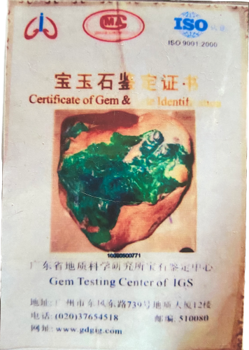 一百四十三斤缅甸老坑(帝王苹果绿)翡翠原石。十五年前先后经广东省地质宝石研究所鉴定中心用红外线检测鉴定为翡翠。上海复旦大学宝石专家程博士生导师鉴定为(帝王苹果绿)缅绚老坑翡翠原石A贷,估价为一点五亿元,现市场低迷以一亿元出售,有意者请联系。