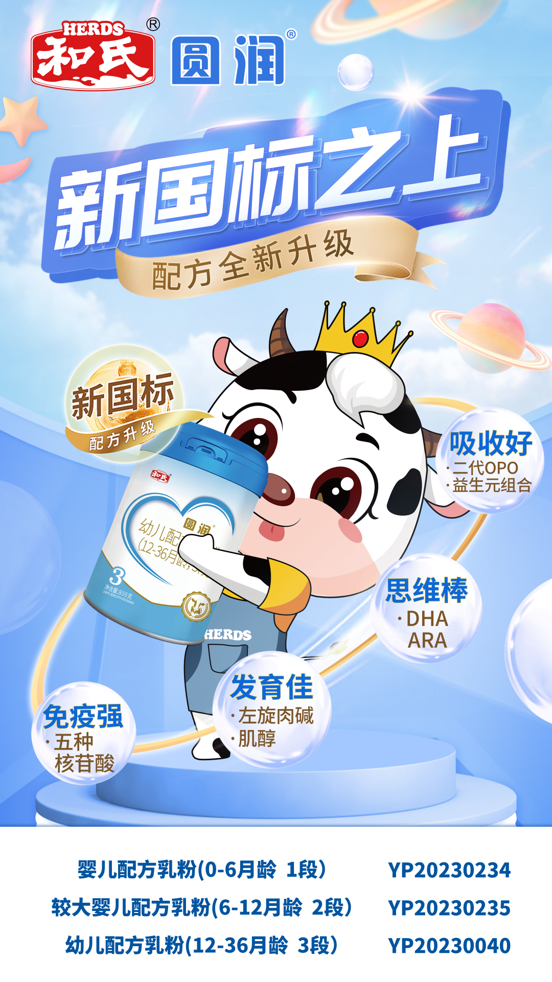 据《母婴视界》了解,此次陕西和氏乳业通过新国标注册的所有婴配粉均实现了“配方+包装”的双重升级,在立足新国标对营养成分的严格设计要求下,全段含硒、锰、胆碱等新国标必需营养元素。