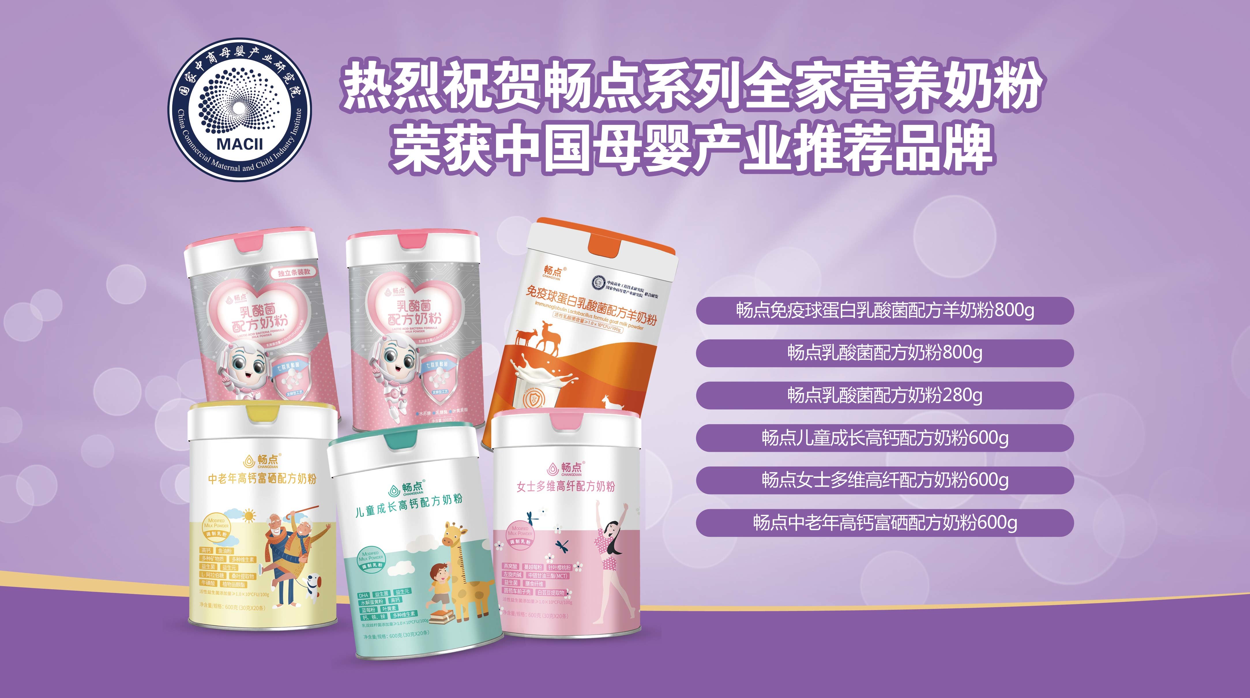 2023年5月10日,畅点系列全家营养奶粉被国家中商母婴产业研究院评为“中国母婴产业推荐品牌”,这既是畅点系列全家营养奶粉品牌荣誉的见证,同时也是畅点系列全家营养奶粉品质安全的见证。畅点系列全家营养奶粉品质安全值得信赖!
