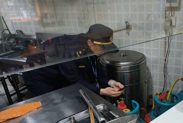 仅需15分钟,洪塘街道就能完成1家小餐饮店的多部门联合执法专项检查,包括调查取证、责令整改、立案查处的“全闭环”监管。在其中一家店,执法队员现场发现了2处安全隐患问题:“减压阀无调节阀门”“燃气灶具无熄火装置”,并现场责令整改。