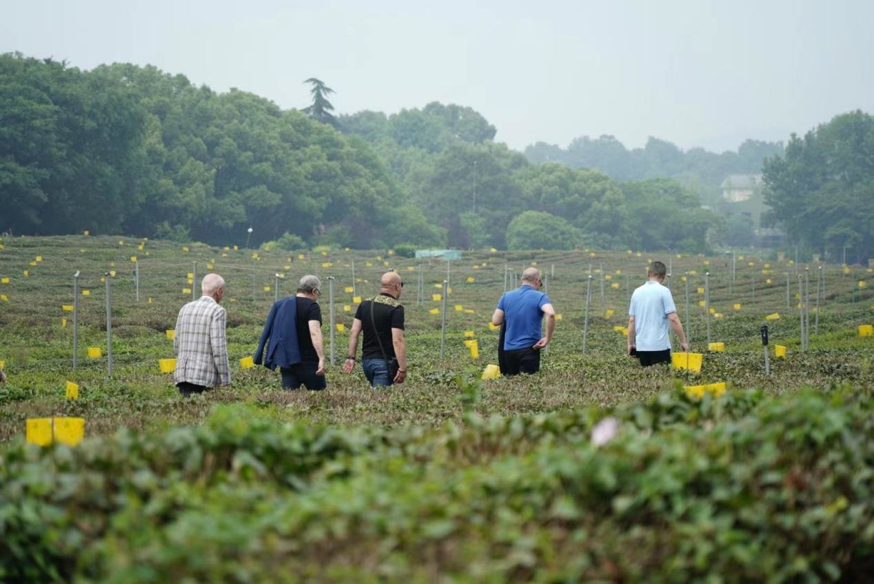 保加利亚文旅经贸团由来自中国-中东欧农业合作促进联合会、大特尔诺沃市政府、保加利亚“一带一路”协会、保加利亚-中国工业商会和文化旅游企业15位代表人士组成,他们一行来到中国茶叶博物馆,在林晨副馆长接待陪同下,走进龙井茶园,漫步绿色梯田,置身扑鼻茶香,了解到中国茶叶的渊源历史和发展演变,以及龙井茶的种植、采摘和制作环节,体验了绿茶、黄茶、红茶、白茶、黑茶、花茶等多种不同的茶叶品种,了解中国各种茶叶的产地、产量、保存和制作方法等。茶艺师现场进行茶艺表演,举手投足间尽显茶艺魅力,大家品味鉴赏汤色,细闻茶香,对中国的茶文化之美竖起大拇指。在品茶课堂中,经贸团一行成员们沉浸式地泡制一杯好的龙井茶,并学会了如何品尝鉴赏龙井茶。他们在深入参观体验的过程中,对中国茶文化产生了浓厚的兴趣,不断地与当地茶文化专家、茶农交流茶叶、茶具等相关知识,也分享了在自己中东欧国家的茶文化经验和感受。
