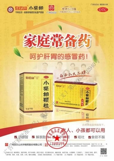白云山小柴胡起源于东汉医圣张仲景的《伤寒杂病论》中的主方小柴胡汤,由柴胡、黄芩、半夏(姜制)、党参、生姜、甘草、大枣共七味中药以“君臣佐使”的原则组成,传承至今已有近两千年的历史。目前,它被广东省认定为非物质文化遗产,并由百年老字号白云山光华进行传承和保护。白云山小柴胡颗粒对感冒、发热、流感有良好的防治效果。可以疏肝和胃,扶正祛邪,尤其擅长治疗感冒和流感等外感病症,对预防和治疗这些疾病具有良好的效果。