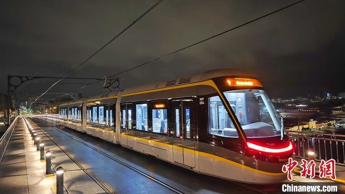 资料图为当地时间4月20日凌晨,由中车唐山公司制造的波尔图地铁车辆进行动态限界、动力学性能试验。 中新社发 中车唐山公司 供图