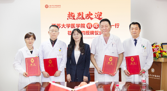 江苏大学医学院院长钱晖、副书记兼副院长邱健、发展办主任宁松毅、院办主任陶文杰等一行人莅临签约揭牌仪式,上海中大肿瘤医院领导班子以及相关科室、职能部门负责人共同参加了会议。