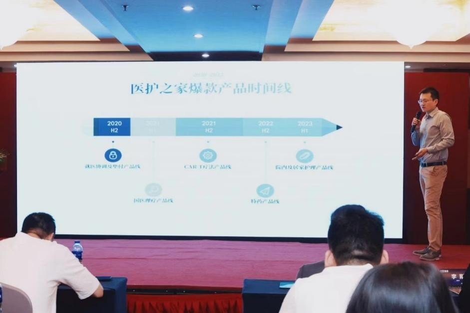 接着,医护之家联合创始人兼公司COO刘珺上台发表了演讲,详细解读了医护之家全新一代院内陪诊权益产品的设计理念和服务优势。他指出,该产品以国内首个陪诊师职业技能规范团体标准为基础(标准编号:T/CMEAS009-2023),通过建立完整的培训、认证与服务评价体系,真正实现了陪诊师规范化、标准化、专业化闭环运营管理,为广大患者在院内就诊过程中提供高质量的全程陪诊服务。