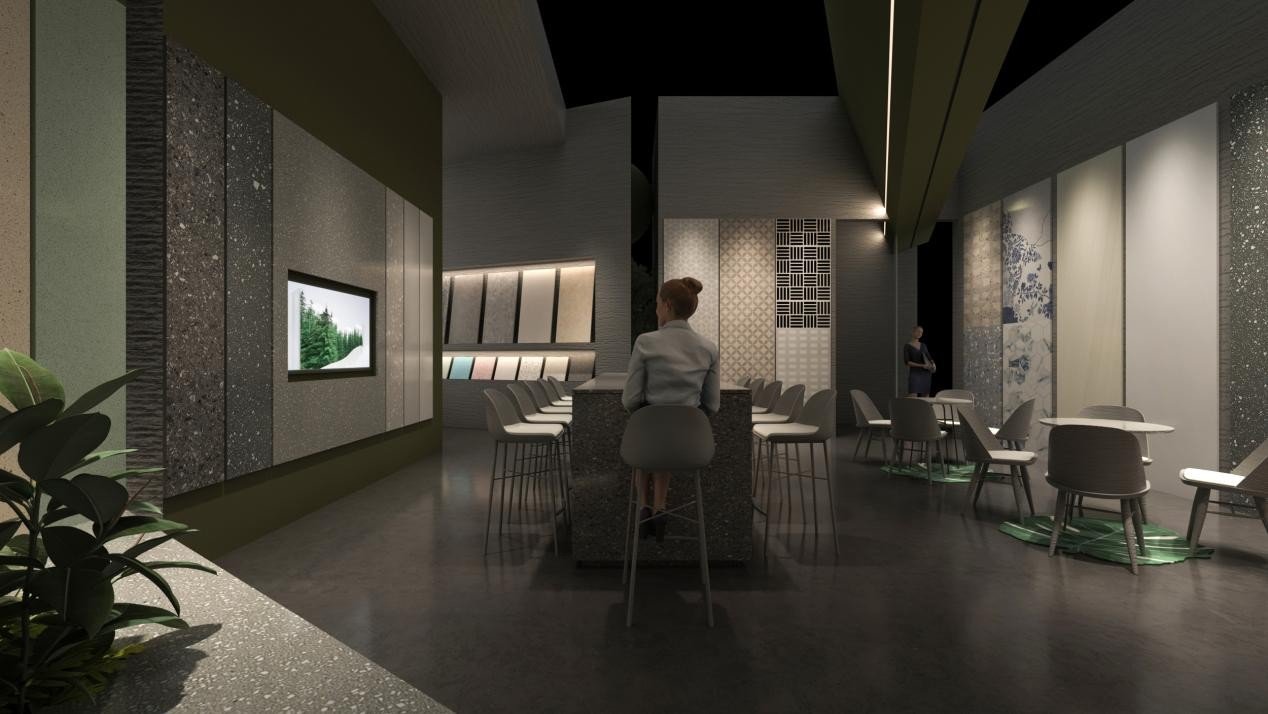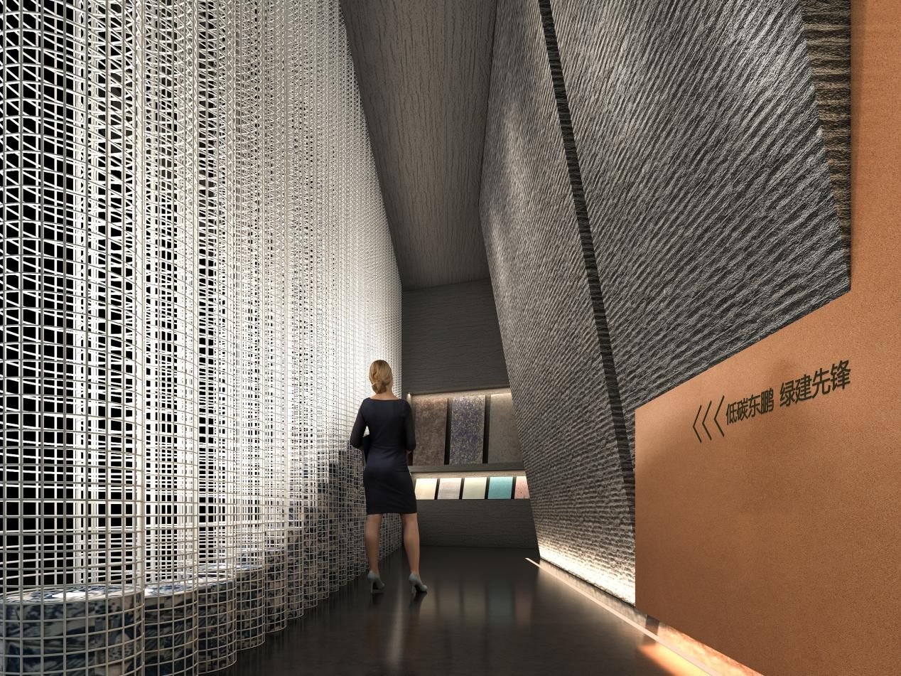 展馆馆内以“石˙序”主题故事串联,分为石之序言、石之时序、石之秩序、石之工序、石之延序五大部分展开,阐述万物有序、石归自然,让材料、空间、建筑、城市、人居美好永续循环的主旨,凸显东鹏生态石还原自然之美、守护自然之序的绿色优势,为创造再新生,传递一份社会责任,让美好有序循环再生。