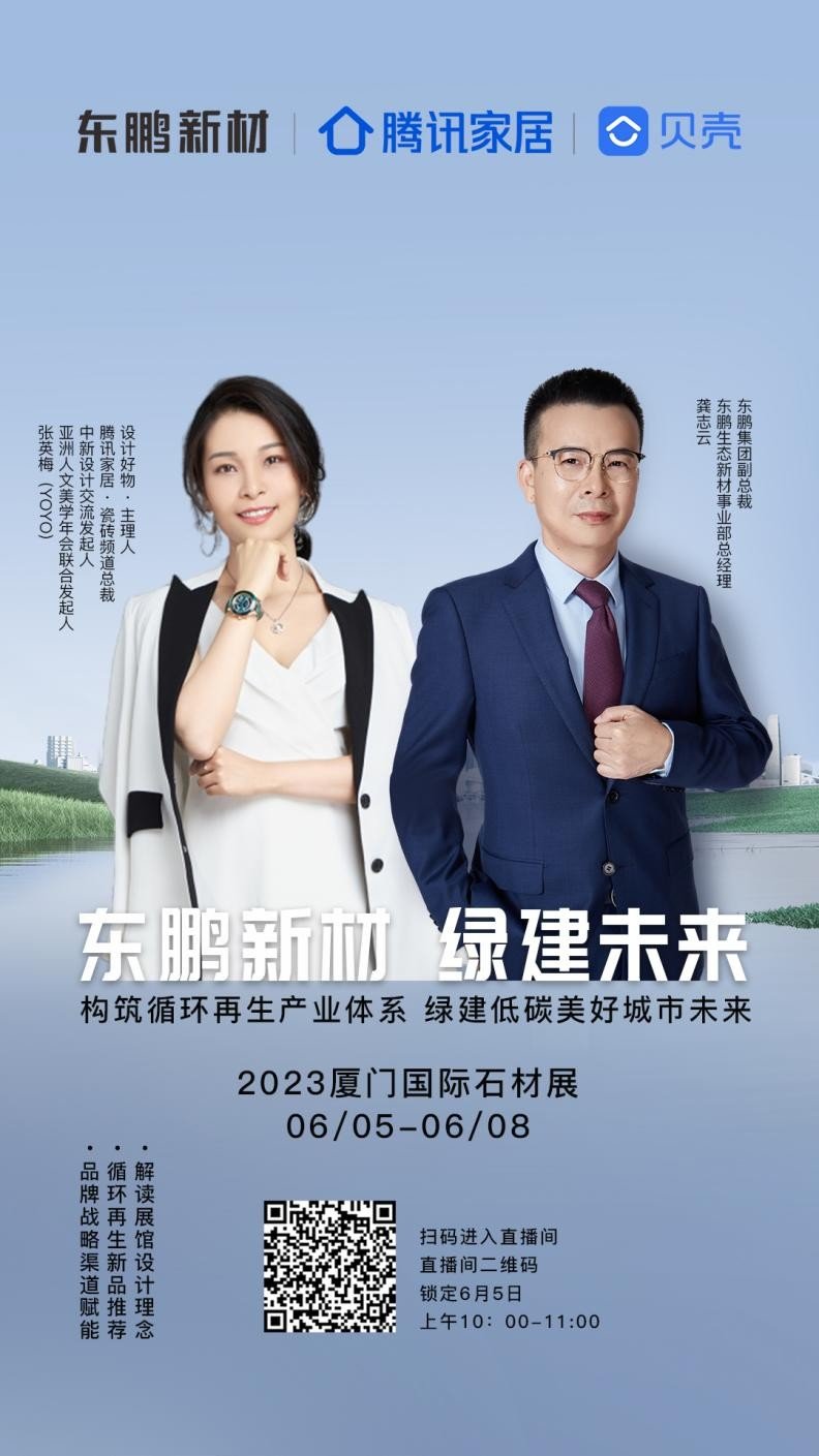 绿色建筑材料是未来产业发展趋势所向,怎样引领时代低碳潮流掘金城市绿建市场,东鹏集团副总裁、生态新材事业部总经理龚志云携手设计好物·主理人YOYO通过线上直播的形式,为大家解读“东鹏新材 绿建未来”主题馆的设计理念、生态石四大系列新品的独特卖点和应用优势以及东鹏新材城市绿建的渠道赋能,共同探讨行业新增长曲线,引领产业绿色高质量发展。