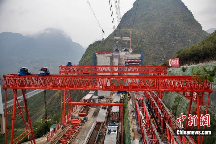 6月8日,纳晴高速公路重点控制性工程——牂牁江大桥正在建设中。中新网记者 葛成 摄