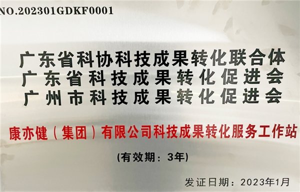 科技实力,创新引领。康亦健(集团)健康坊荣获科技成果转化服务工作站授牌!此次授牌是引导政府、高校及专业服务资源力量——专家、人才、技术等创新要素向企业集聚的重要表现,多维度赋能科技创新,康亦健自主创新力全面提升。