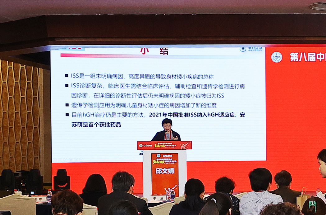 本场课题讨论尾声,由江西省儿童医院杨玉教授总结发言,杨教授表示:随着精准医疗、个性化诊治的不断发展,背靠不断发展的基因检测技术,ISS治疗从对症治疗转变到寻因治疗。安苏萌人生长激素,是国内首个获批ISS适应症的生长激素,同时也是国内唯一不含防腐剂的生长激素水剂,是临床治疗ISS安心之选。