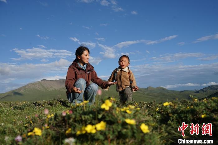 图为麻切仁措与弟弟在草原上唱歌玩耍。马铭言摄