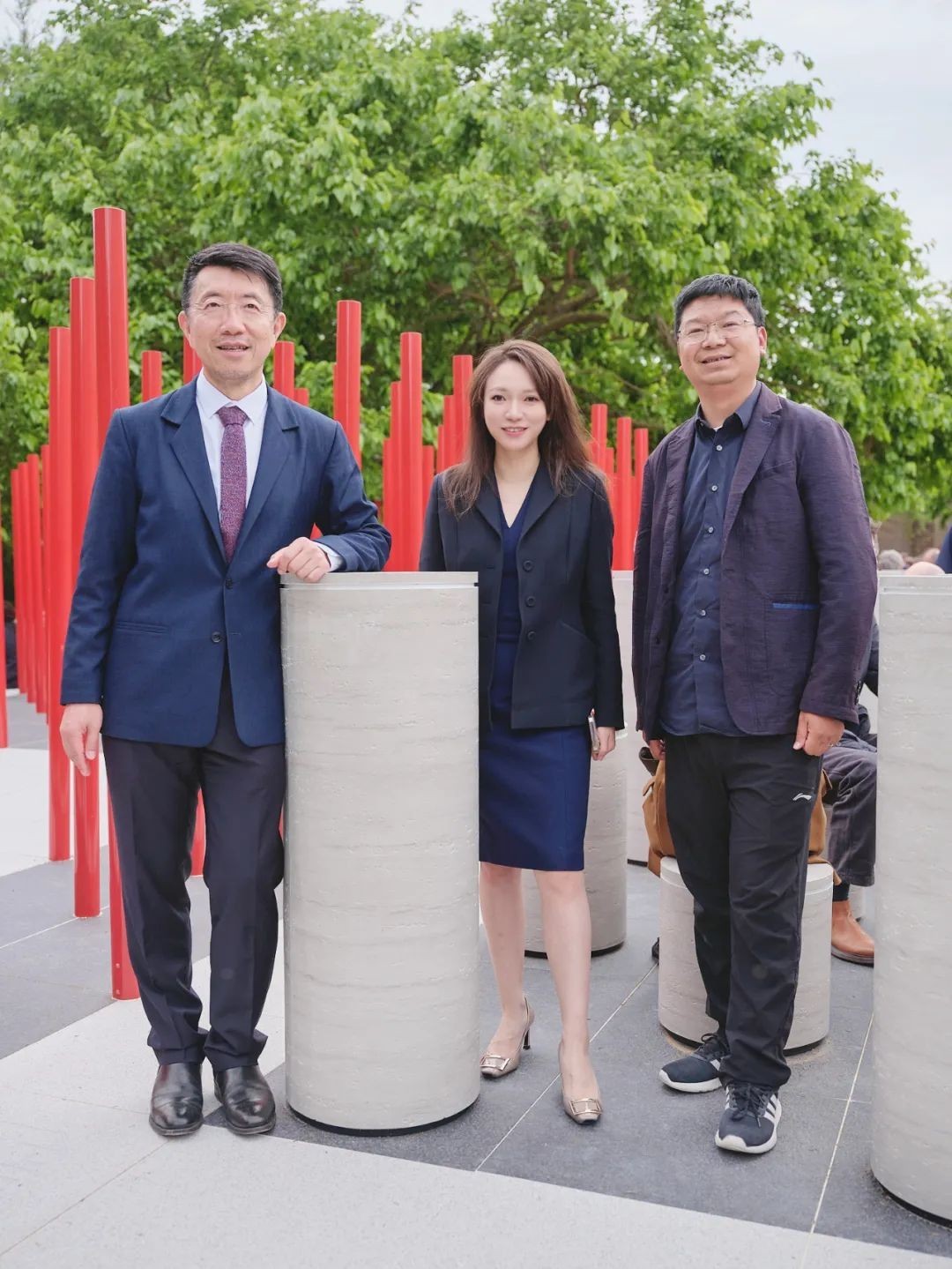 与中国国家馆策展人阮昕、执行策展人张海翱合影