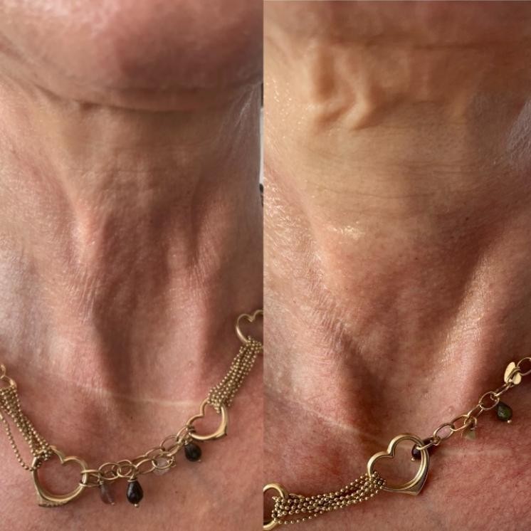 我对 GOURI 改善颈部皱纹功效的体验可以通过这个案例来证明。患者使用 2 支 GOURI 注射器进行 1 次治疗。