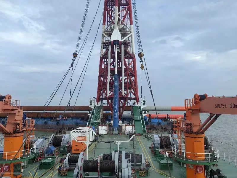 据了解,该项目共需要完成群桩沉桩160根、单桩沉桩36根、风机安装56台。截至8月14日,已完成群桩沉桩72根、单桩沉桩17根、风机安装7台。