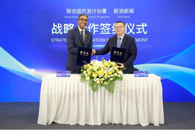 8月16日,新浪新闻与联合国开发计划署(UNDP)战略合作签约仪式在北京联合国大楼举行。根据协议,双方约定将携手合作,号召网友关注可持续发展进程,贡献个体的力量。微博COO、新浪移动CEO、新浪AI媒体研究院院长王巍,联合国开发计划署驻华代办乔展(James George)出席仪式并发表讲话。现场还举行了#ActNow#即刻行动全球倡议中国站启动仪式。