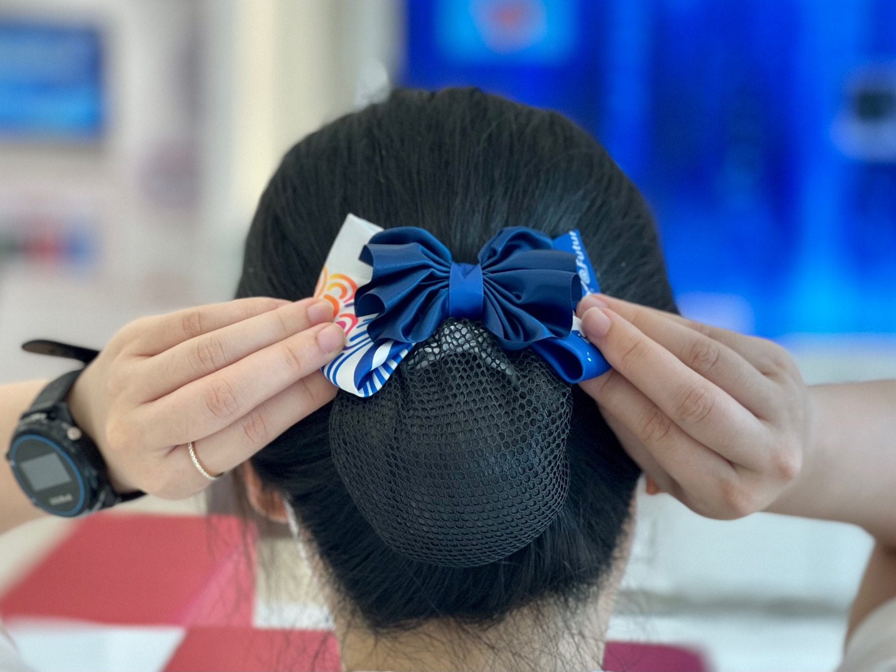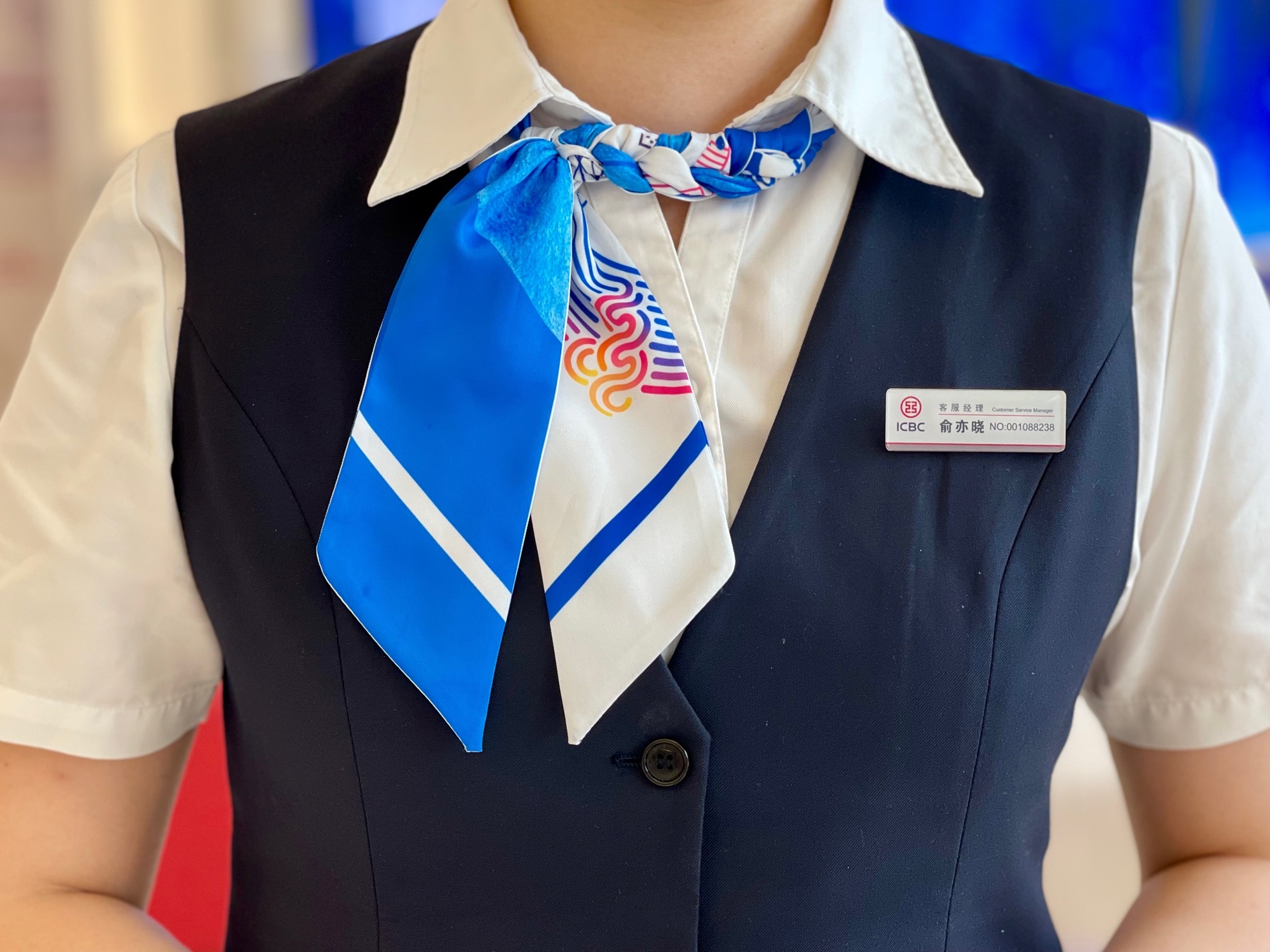 新城支行营业部是一支朝气蓬勃、激情洋溢、富有创造力的高素质服务团队,设有2位英语服务专员,多位英语熟练应用员工。为进一步提升特色服务形象和服务本领,新城支行员工统一佩戴亚运特色饰品,女员工的头花、领花以及男员工的领带上的图案与颜色均与亚运主色调契合,并统一于晨夕会开展亚运知识普及培训,由英语服务专员带头设立亚运英语服务小组,学习亚运会相关英语知识,巩固基础业务的英语服务话术,营造“比学赶超帮”的良好氛围,提升员工综合素质,展示国际化、多元化的服务风貌。