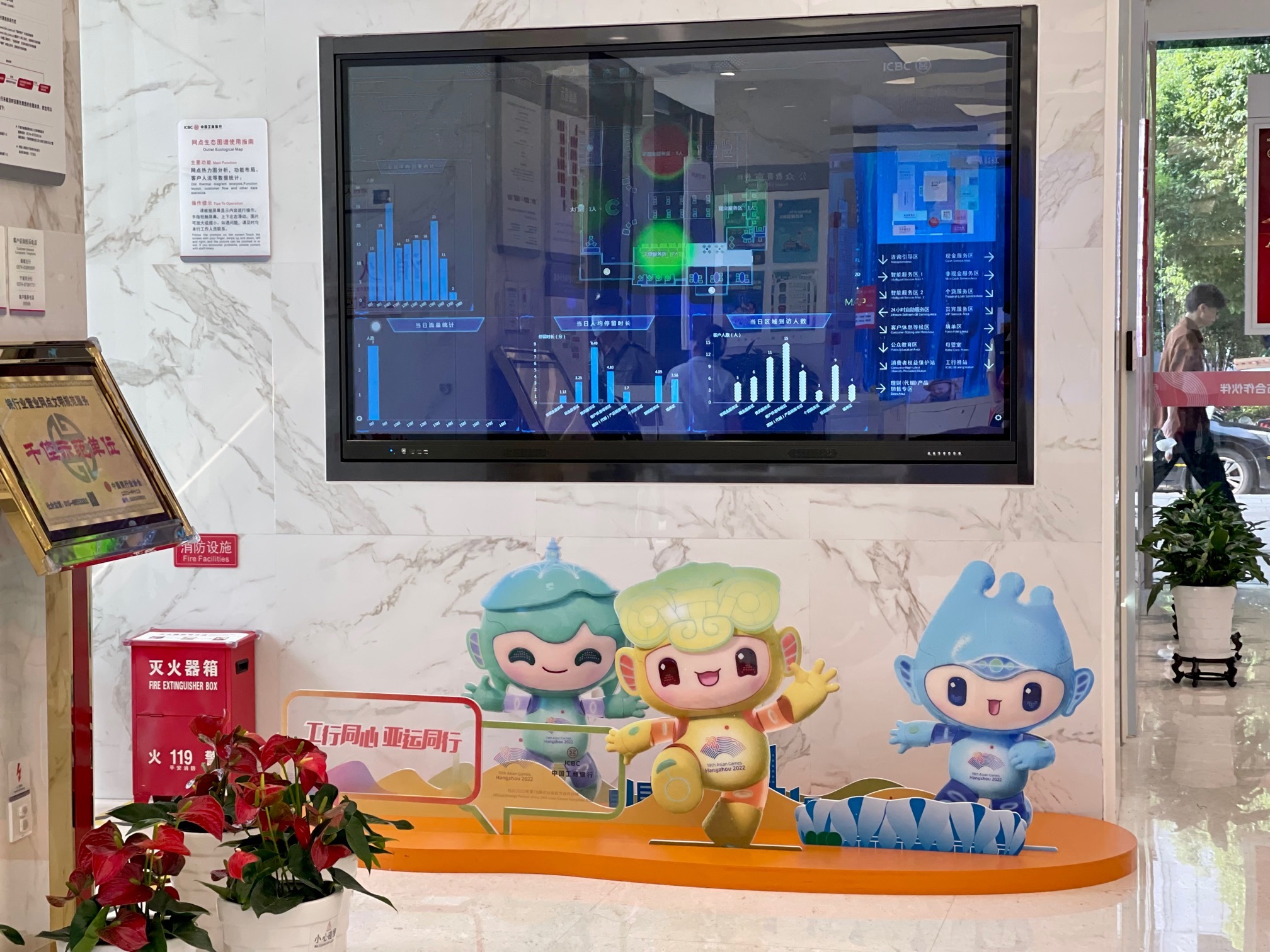 新城支行在原有“一定三化”、舒适贴心的网点布局之上,“淡妆浓抹”点缀了亚运特色。在引导台、高低柜柜面、工行驿站放置亚运吉祥物摆件,厅堂内放置立体宣传牌,网点外围、理财柜外围张贴亚运标识,LED屏幕滚动播放亚运宣传内容,传递亚运文化,营造浓厚亚运氛围。为方便市民购置亚运周边产品,新城支行开辟了亚运驿站,落地工行亚运贵金属宣传展示场景,提升社会群众及到店客户对工行作为亚运官方合作伙伴的身份认知。在“工行驿站+亚运驿站”双驿站新模式下,新城支行在持续开展外拓服务、厅堂活动、为广大户外劳动者提供休憩场所等的同时,不断延伸服务半径,打通金融为民“最后一公里”。