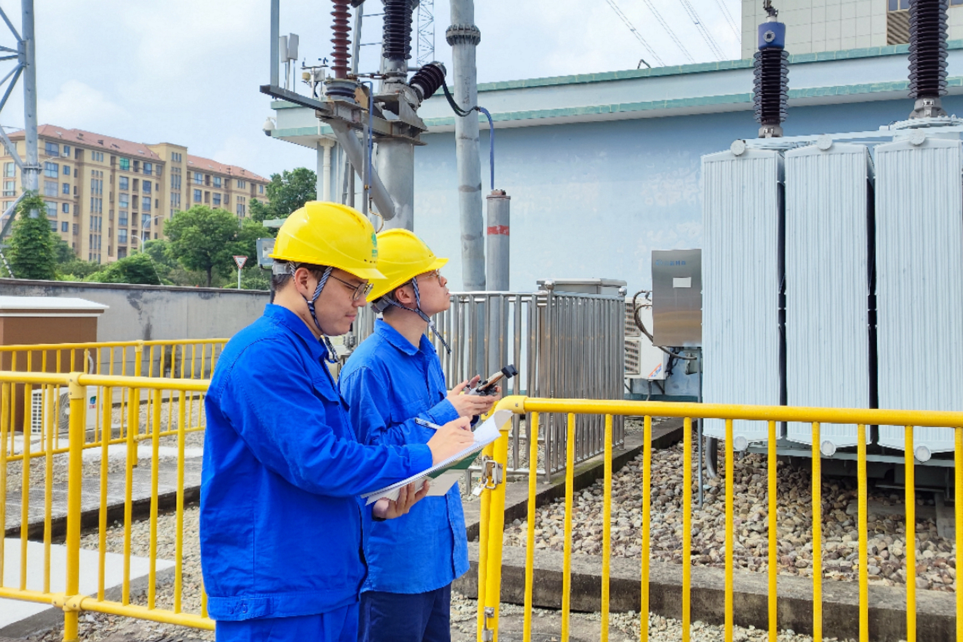 当天,变电运维人员熟练地操作着无人机飞到空中,对变电站的变压器、独立避雷针、闸刀、绝缘子、母线等设备进行录像,通过无人机实时回传的画面,对设备的每一个部位进行仔细检查,一旁的同事也对存在问题的部位进行分析记录,便于后续及时进行处理。