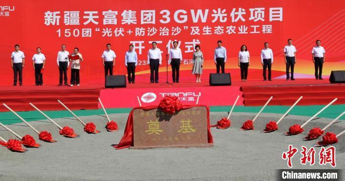 中新建电力集团3GW光伏项目在新疆生产建设兵团第八师一五〇团正式开工。赵优摄